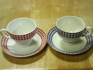 ギンガムチェックのカップ&ソーサーを買ってるんるん。