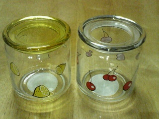 さくらんぼとレモン柄のガラスびんを買ってるんるん。