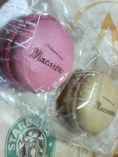 帰りにスタバのマカロン買ってきた。