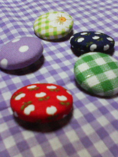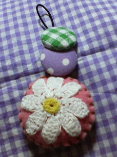 綿つめて、さっきのくるみボタン通して、お花ストラップ作りました。