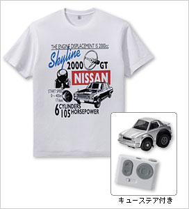 スカイラインのTシャツとチョロQのセットをプレゼントしました。
