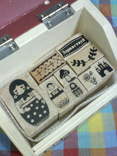 かわいいお家を開けたら、マトリョーシカ*キノコ等のかわいいスタンプ。